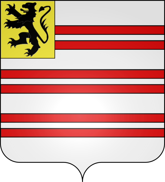 « D'argent à trois jumelles de gueules, au franc canton d'or chargé d'un lion de sable »