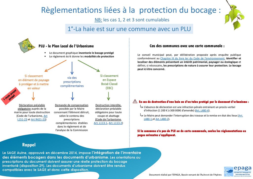 - Ci-dessous les REGLEMENTATIONS liées à la protection du bocage, en trois cas :